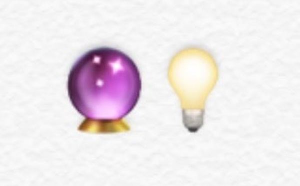 占いで使われる水晶が電球で明るく照らされている絵文字を使って、未来が明るいことを表現。