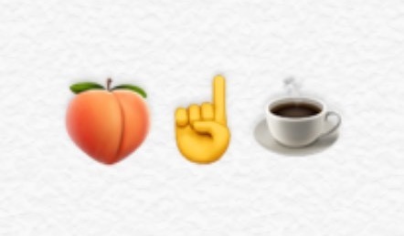 But(バット)には、同じ発音を持つButt(お尻)のように見える桃の絵文字をチョイス。一番という意味のFirstは人差し指の絵文字で表現。コーヒーはそのままコーヒーの絵文字で。