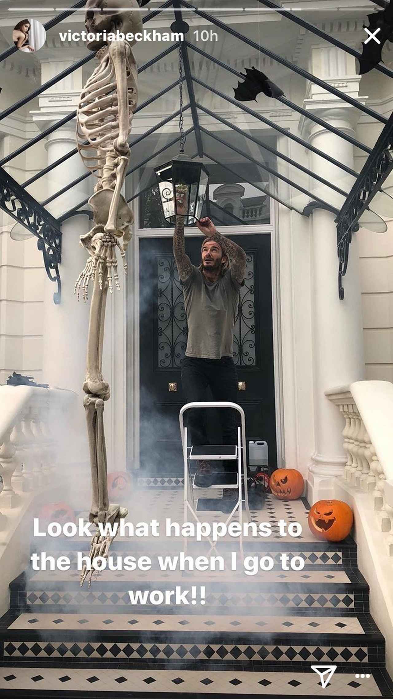 ヴィクトリア・ベッカムが仕事で家を出る時に、玄関をハロウィン仕様にデコレーションしていたデヴィッド・ベッカムを発見。