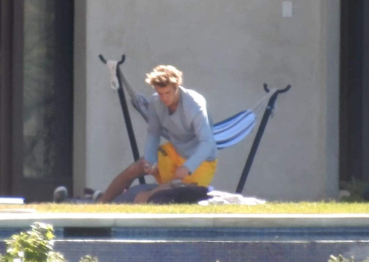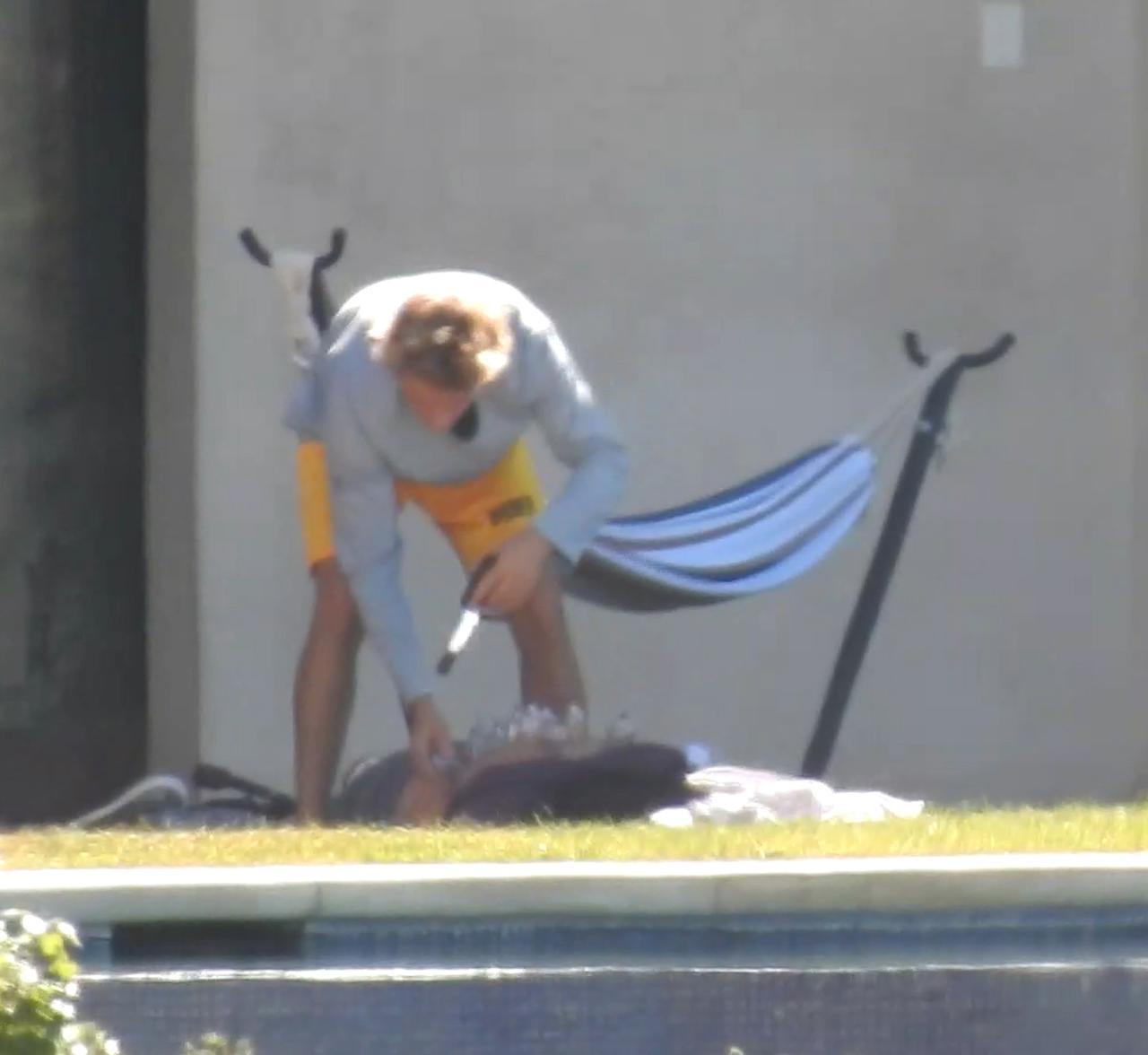 この日、自宅のプールサイドで友人とくつろいでいたジャスティンは、どういった流れか友人の男性にマッサージをしてあげることに。