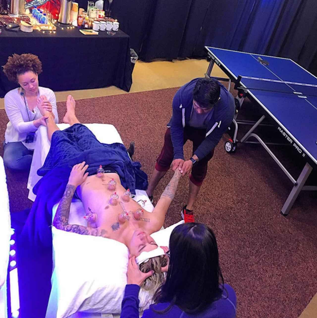 ジャスティンはこのカッピング施術を以前からたびたび行っており、体にそのあとが残っているのを目撃されたことも。