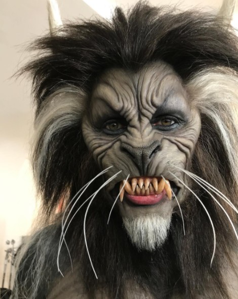 角から牙、そしてゴツゴツした人間味のない肌に仕上げるために、何時間もかけて特殊メイクでそれを再現。