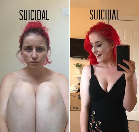 たとえ精神的な病や自殺願望といった問題に苦しんでいたとしても、必ずしもそれが表に出るわけではない。それを証明する2枚の写真が話題になっている。