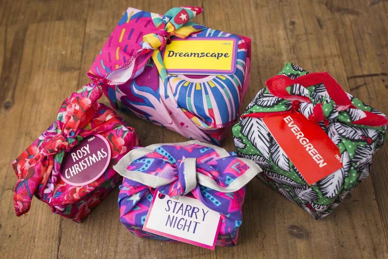 バスボムやコスメなどで人気のラッシュは、ポップでカラフルなアイテムながらも環境にも配慮したエコな商品づくりで知られている。そんなラッシュらしく、今回のクリスマスギフトでも、ラッピングに使用する紙は再生紙100%のものを中心に、コットンをリサイクルしたものなどエシカルな素材も使用。