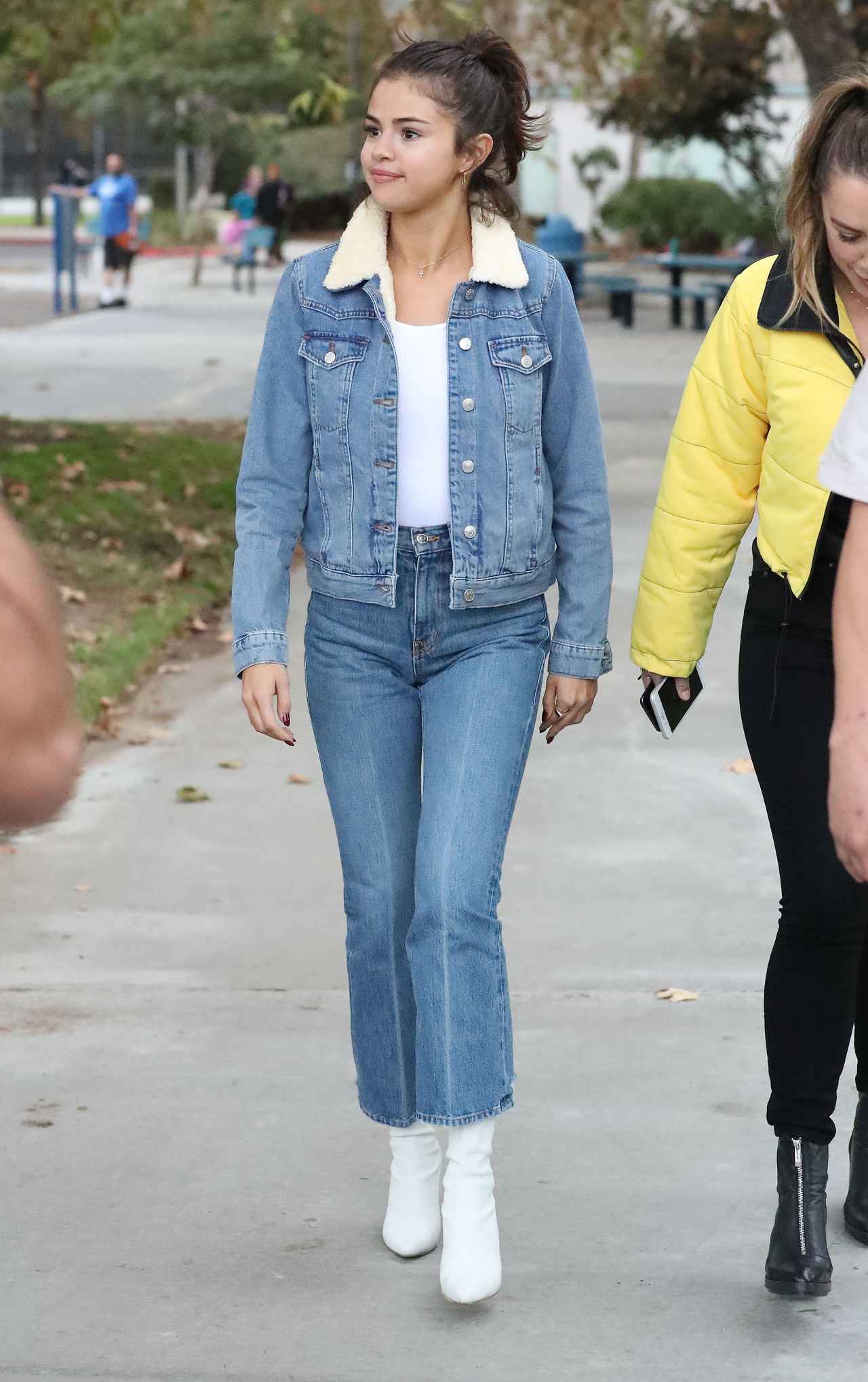 セレーナ・ゴメス、冬でもあったかデニムジャケットをオシャレに着回し