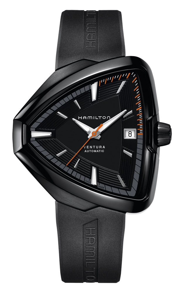 三角形の独創的なスタイルが絶対的な存在感を放つ「ベンチュラ」からは、エルヴィス・プレスリーが愛用したフレックス・ブレスレットタイプのモデルが年内日本先行発売で登場。