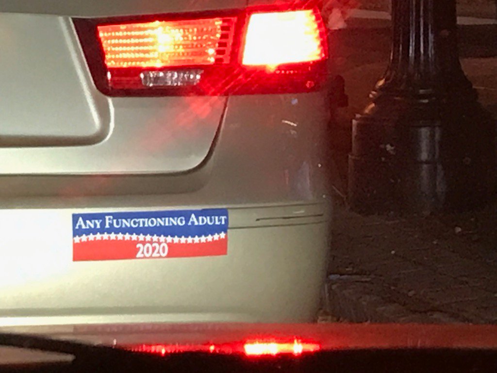 2020年は次の大統領選が行われる年のこと。普通ならば2020年の後に応援する候補者の名前が記されるはずだが、このバンパーステッカーを見る限り、この男性はアメリカの政治の現状に疲れ果てているよう。