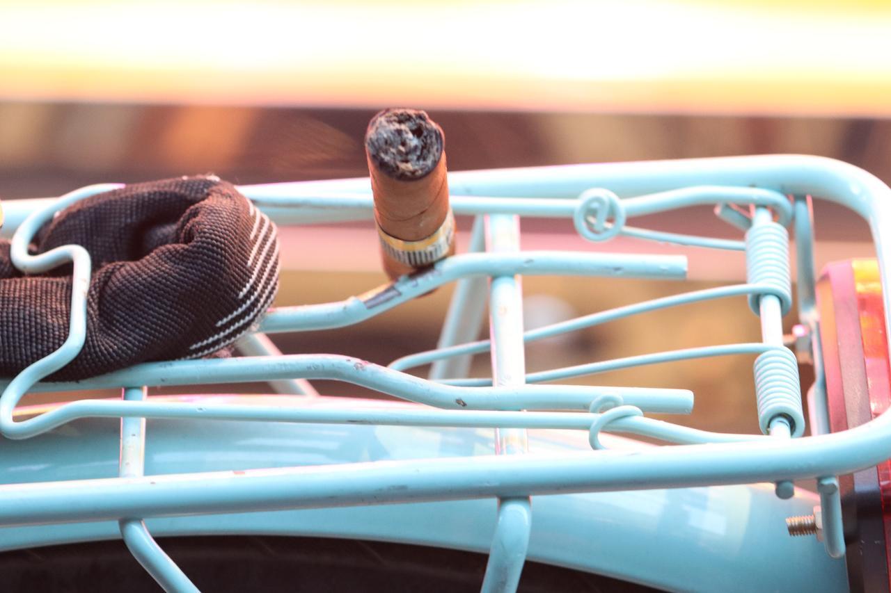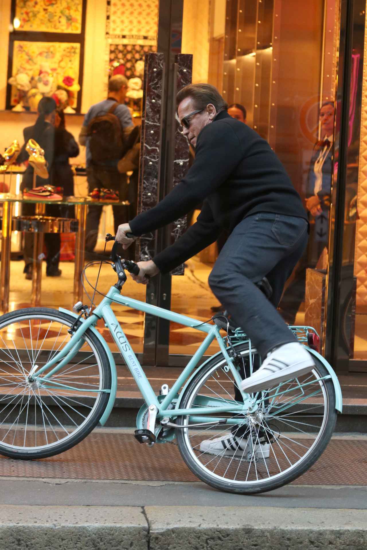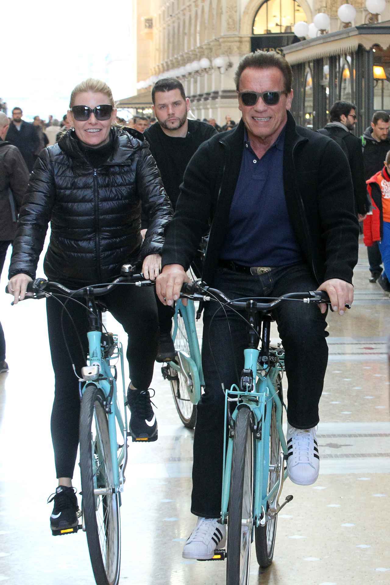 ちなみにこの日、自転車デートというレアな姿を見せたアーノルドだけれど、自転車の荷台には、吸いかけの葉巻が一本。マッチョな魅力も忘れないアーノルドだった。