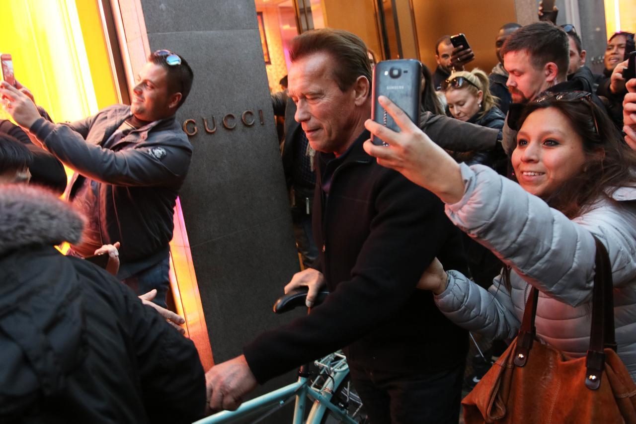 そんな観衆に応えて、ニッコリと手を振るアーノルド。州知事時代を彷彿とさせる。