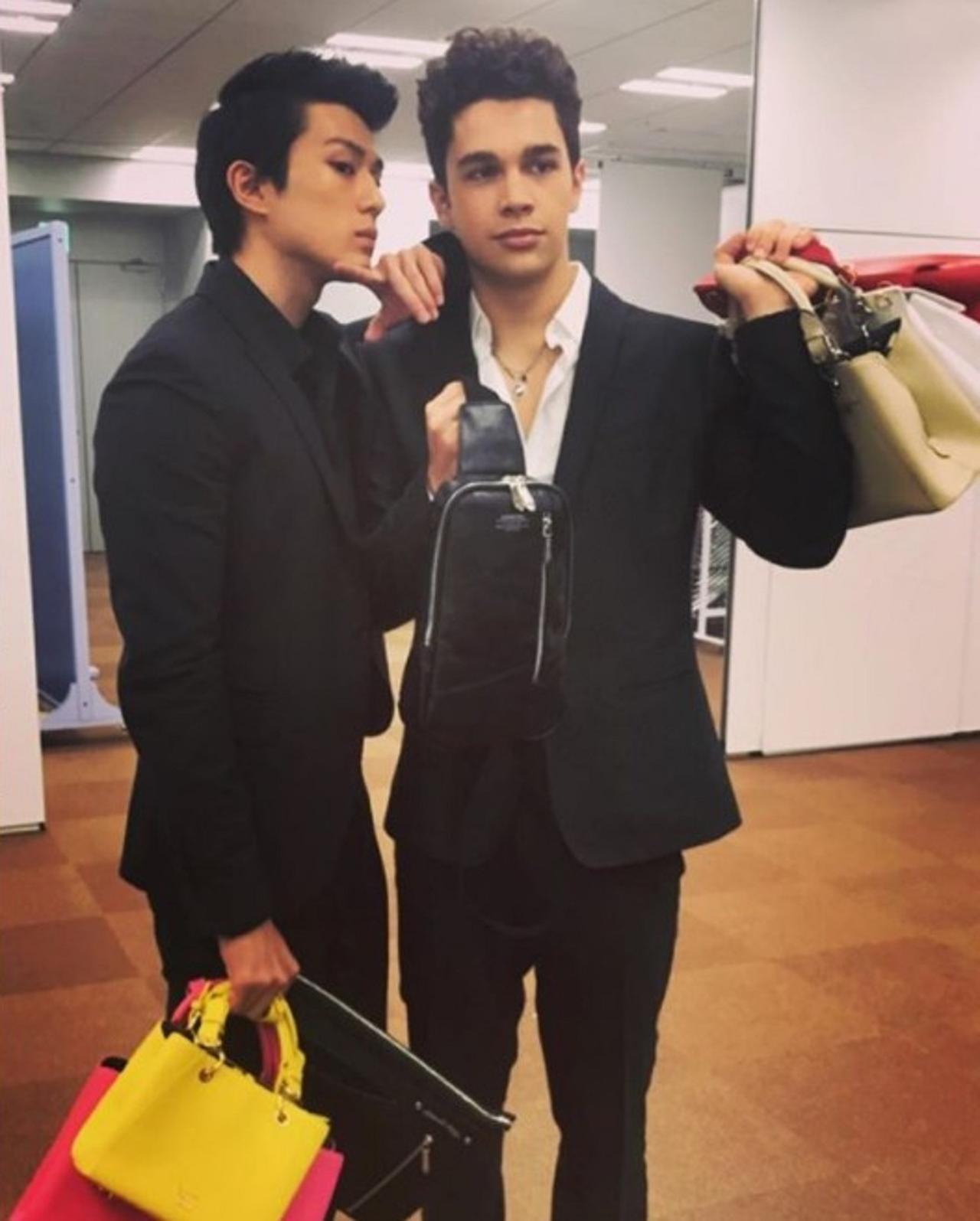 サマンサ・タバサのキャンペーンで共演している俳優の新田真剣佑と。©Austin Mahone/ Instagram