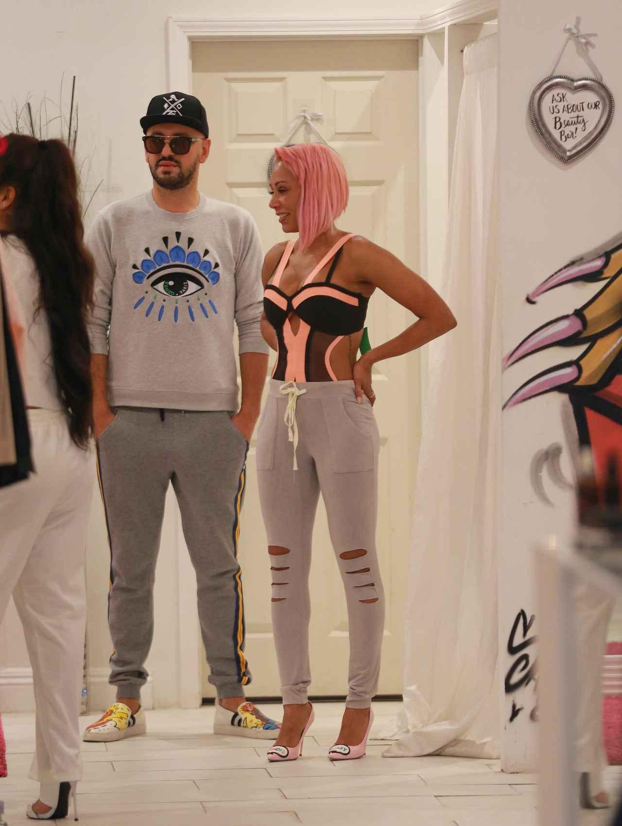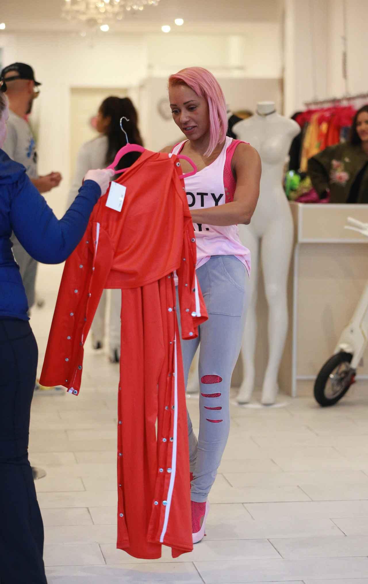42歳とは思えない引き締まったボディのメラニーは、全身ピンクコーデで登場し、店に入ると早速グレーのパンツを試着するなど、ゲイリーとともに思い思いに店に展示してある洋服を物色。