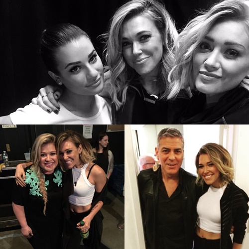 (上から時計回り)リア・ミシェル、ヒラリー・ダフ、ジョージ・クルーニー、ケリー・クラークソンと。
