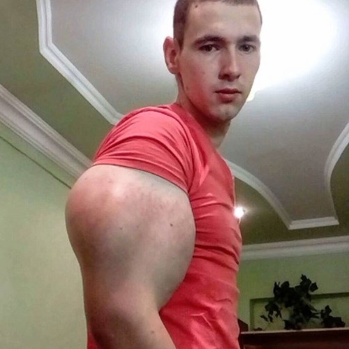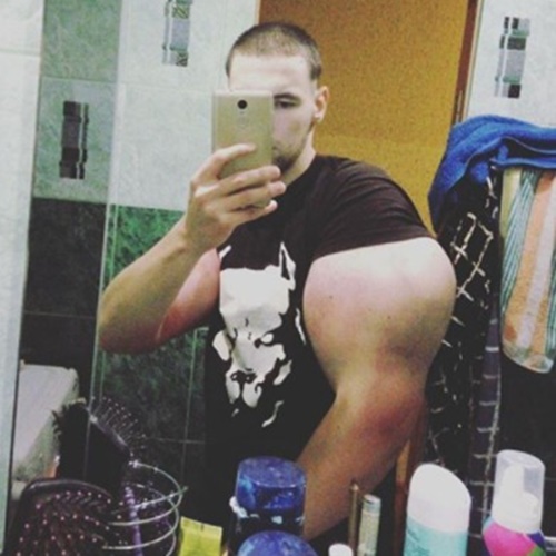 今、ロシアを中心にヨーロッパで大きな話題を集めている21歳のロシア人男性。男性のインスタグラムには、異常なまでに太くなった腕の写真がたくさん並んでいる。