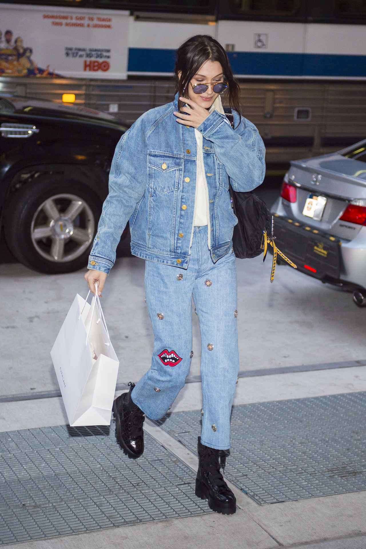 人気モデルのベラ・ハディッドが、デニム・オン・デニムスタイルで姿を現した。