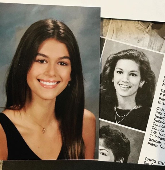 そんななか、シンディがインスタグラムにカイアの高校卒業アルバムと自分の高校卒業アルバムの写真を並べて投稿。