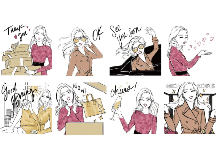 マイケル・コースから、公式LINEアカウント開設1周年を記念して、ニューヨークで活躍するファッションイラストレーター&アーティストのケイティ・カダマトレイ(Katie Cadamatre)が描いたスタイリッシュなオリジナル アニメーションスタンプが、2017年11月28日(火)に配信される。