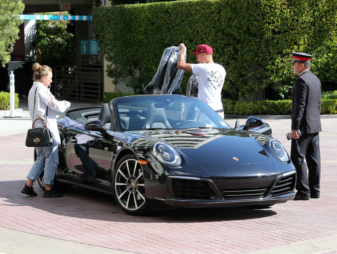 ポルシェのオープンカーでLAのショッピングモールをあとに。