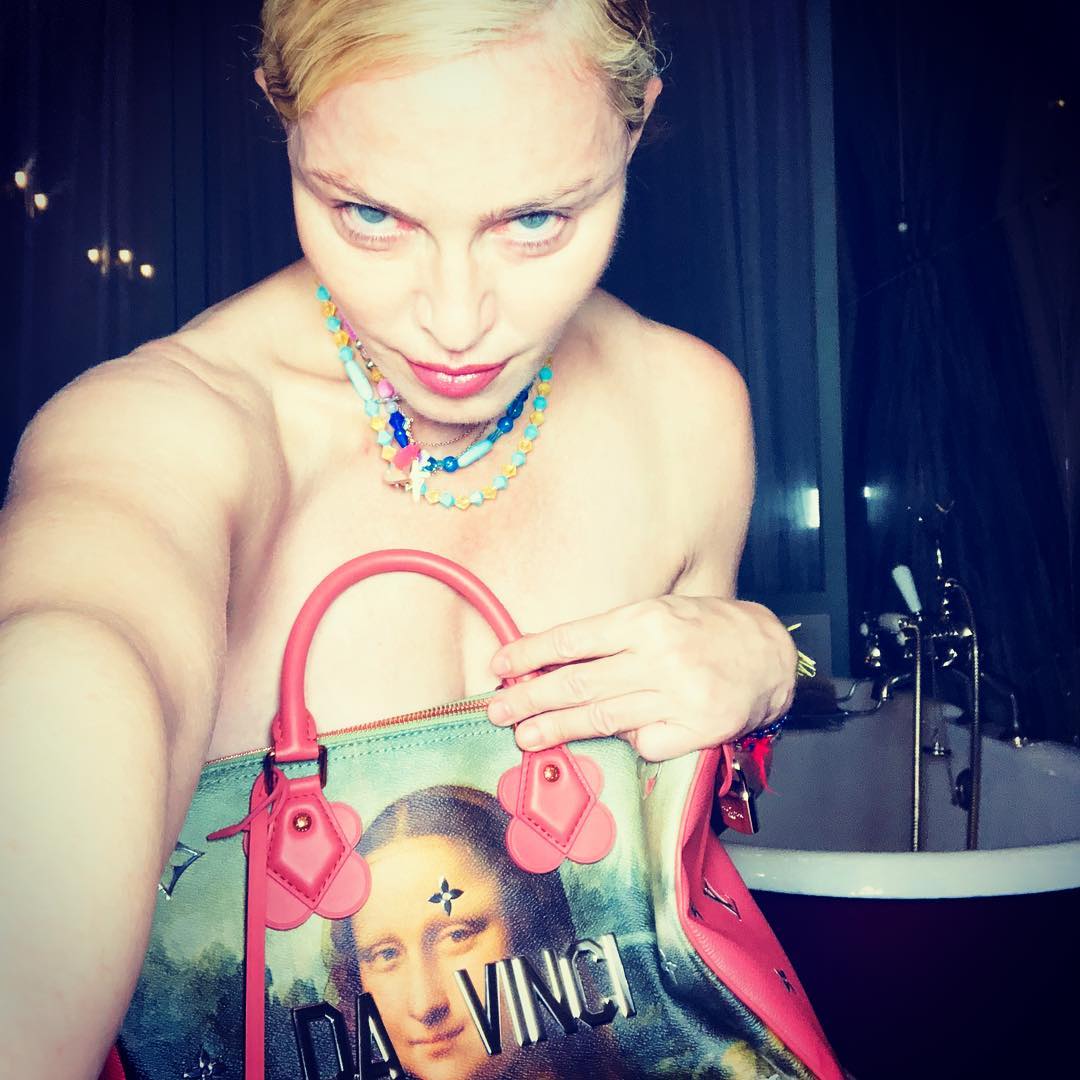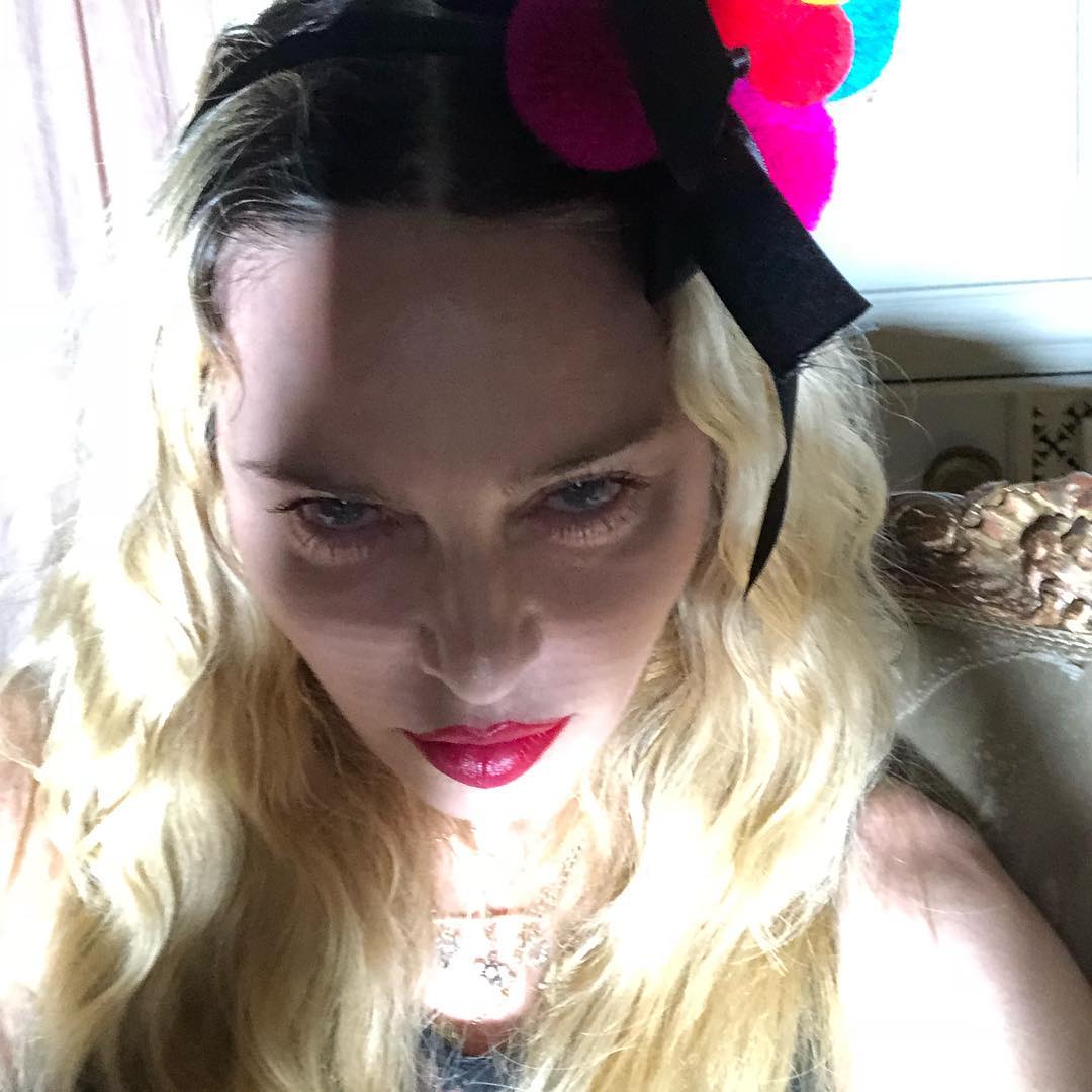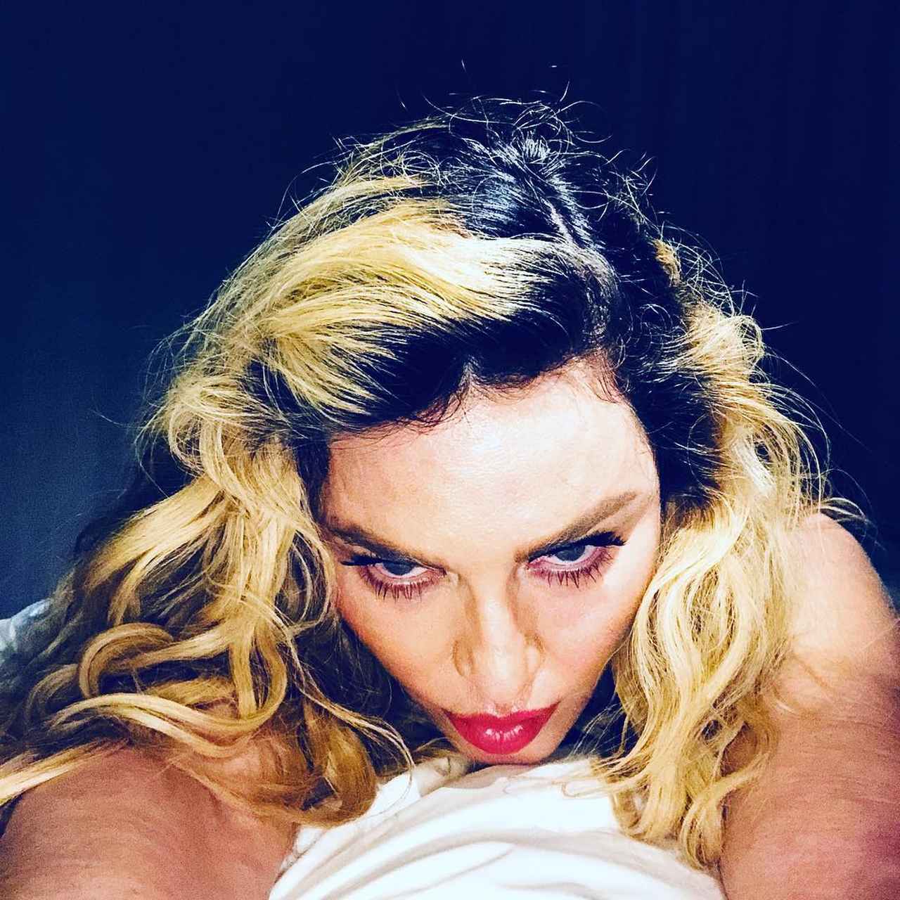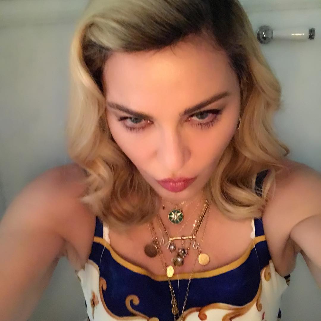 そんなマドンナはセルフィをSNSにアップしているけれど、なかでも彼女のお気に入りのポーズは、上目使い。