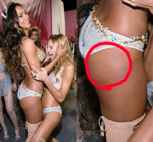 そんな「ファンタジー・ブラ」を着用してランウェイを歩くという、重要な任務を無事に果たしたライスだが、注目してほしいのは彼女の太もも&お尻付近にはっきりと刻まれた「ストレッチマーク(肉割れ線)」。