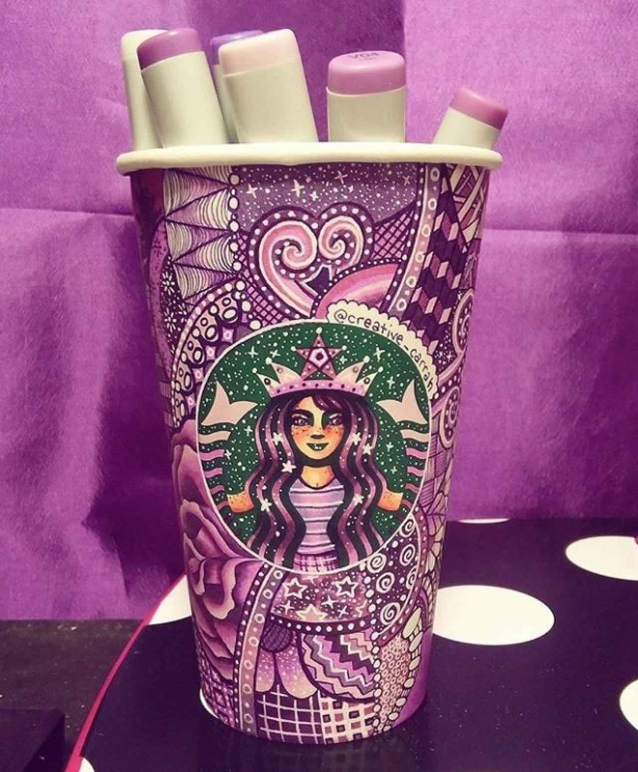 何の変哲もないスタバカップを美しいアート作品に変身させることにすっかりハマってしまった彼女は、今では1作品あたり4時間から16時間かけるほど制作にのめりこむように。