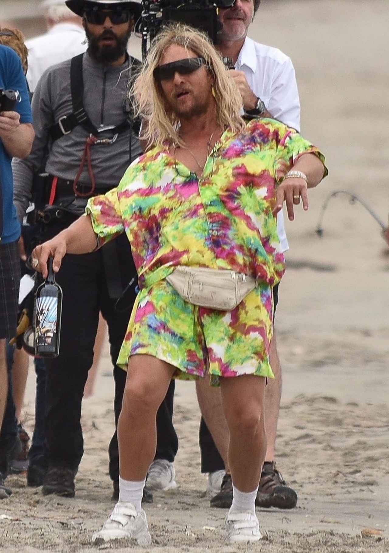 そんな彼が最新主演作『ザ・ビーチ・バム』で、クセの強すぎるチャラ男に変身。映画『スプリング・ブレイカーズ』を手がけたハーモニー・コリン監督が手がける同作の撮影現場で、「チャラおじさん」ルックを完全に自分のものにするマシューの姿が激写された。
