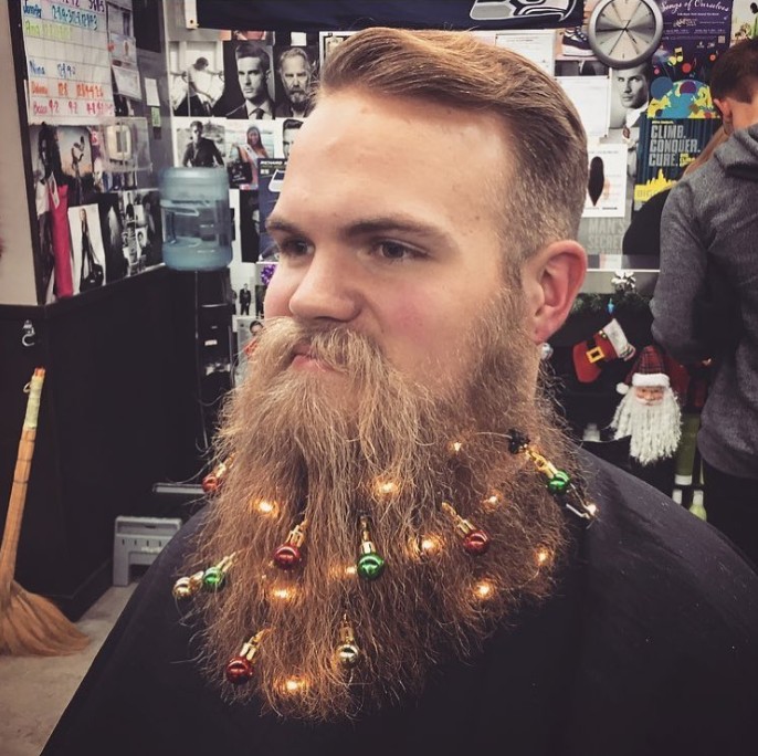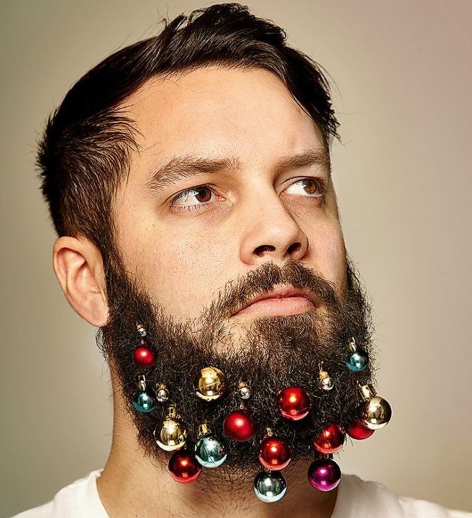 だんだんとクリスマスの季節に近づいているなか、今海外でひげにオーナメントをつけて、ひげクリスマスツリーを作るのが流行っている。