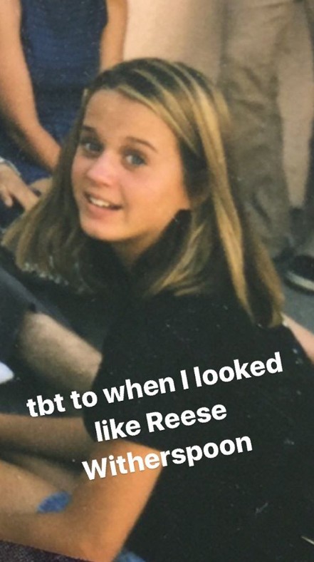 「私がリース・ウィザースプーンにそっくりだった時を振り返り」とケイティがコメントしているように、『キューティー・ブロンド』でおなじみのリース・ウィザースプーンに激似。