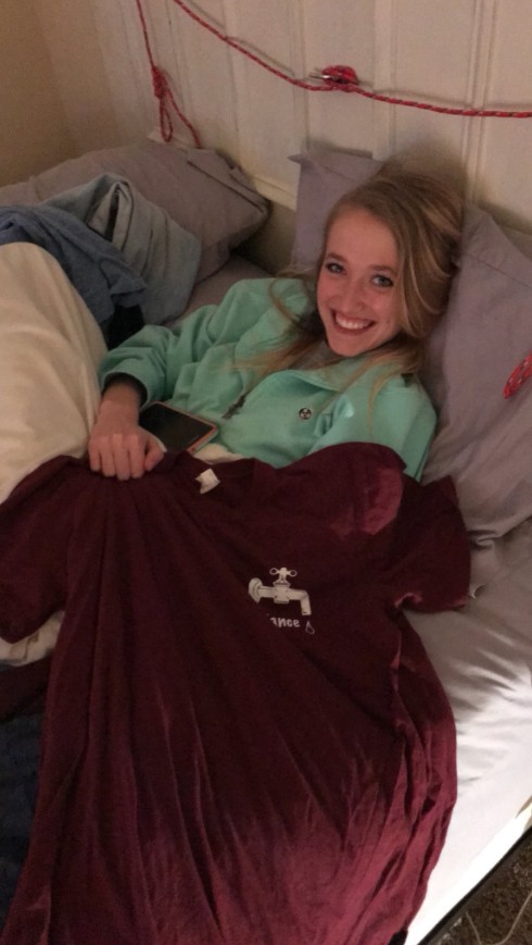 メイソンは彼女のメーガンがベッドに横たわり、そのTシャツを持って笑っている写真を母親に送った。