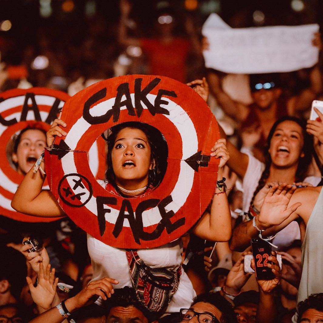 ステージの上で、誰にケーキを当てようか右往左往しているスティーヴ。数多くのプラカードがスティーヴに当てて欲しくてアピール合戦をするなか、スティーヴが指を指して狙いを定めたのは、カメラの持ち主。