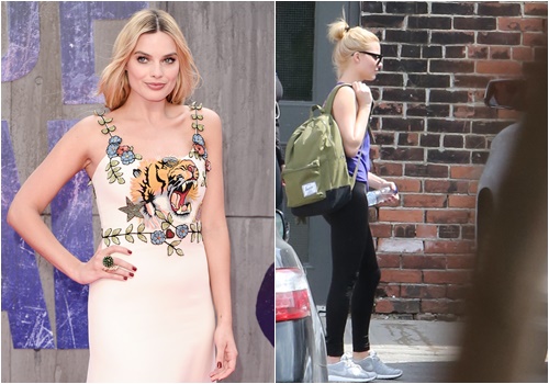 ハーレイ役マーゴット、映画のプレミアにて(左)/トロントでの撮影中に連日ジムへ(右)。