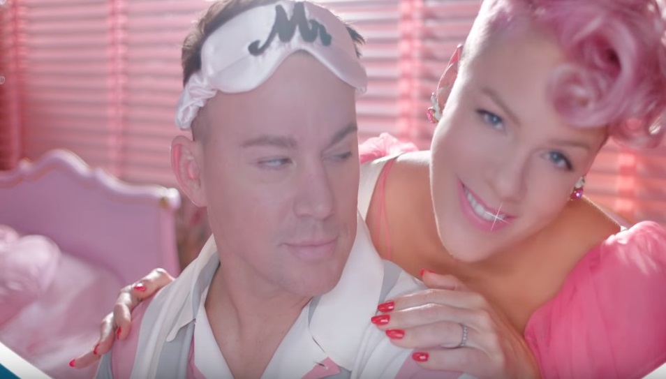 ちょっとドジな専業主婦を演じるピンクの夫役には、映画『マジック・マイク』のイケメン俳優チャニング・テイタムがキャスティング。