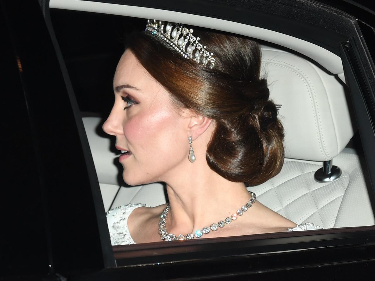 洗練されたファッションと上品な雰囲気で、世界中から注目を浴びる英王室のキャサリン妃。そんなキャサリン妃とウィリアム王子が、毎年恒例のバッキンガム宮殿で行われるディプロマティック・レセプションに出席。車で会場入りする姿に写るキャサリン妃の頭にはティアラが。