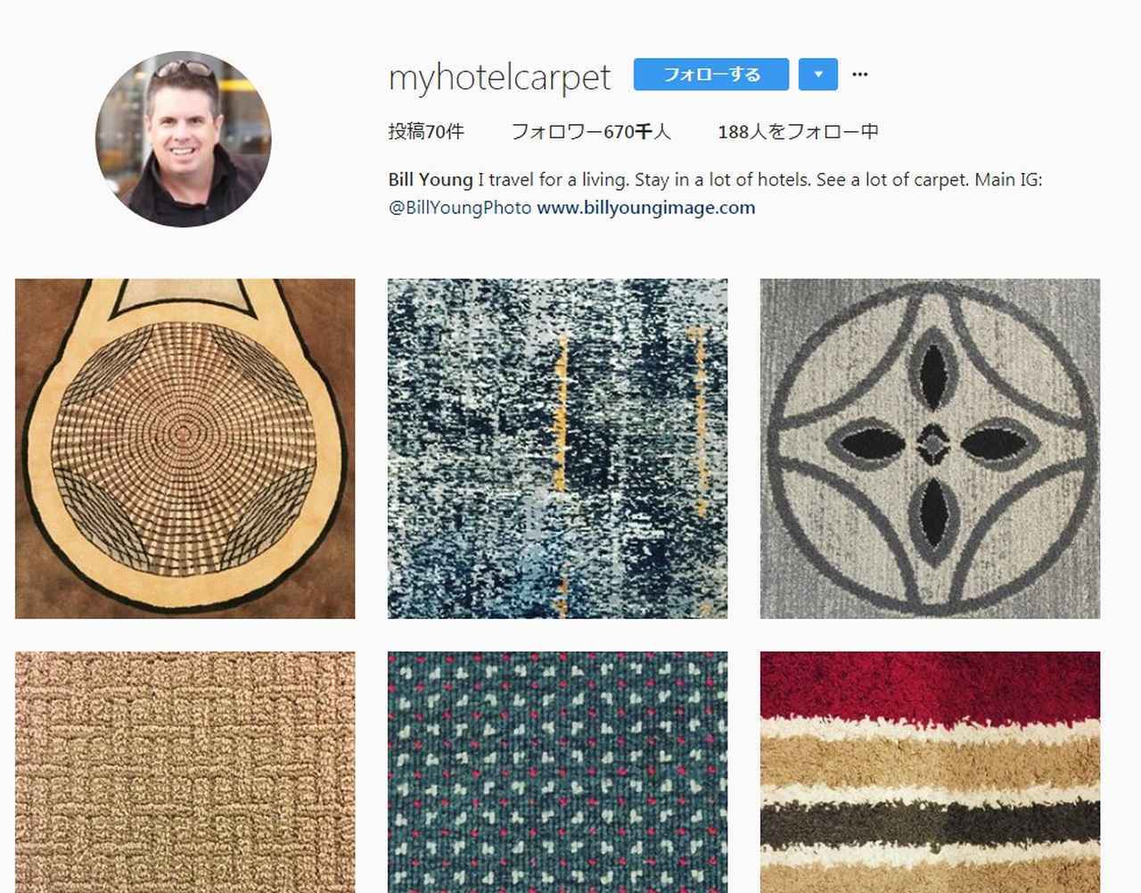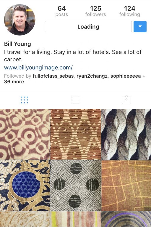 そのジルの父親であるビルは、パイロットで世界各国を飛び回り、行く先々のホテルに敷かれているカーペットの一部だけをアップするという、なんとも不思議なインスタグラムのアカウントを持っている。