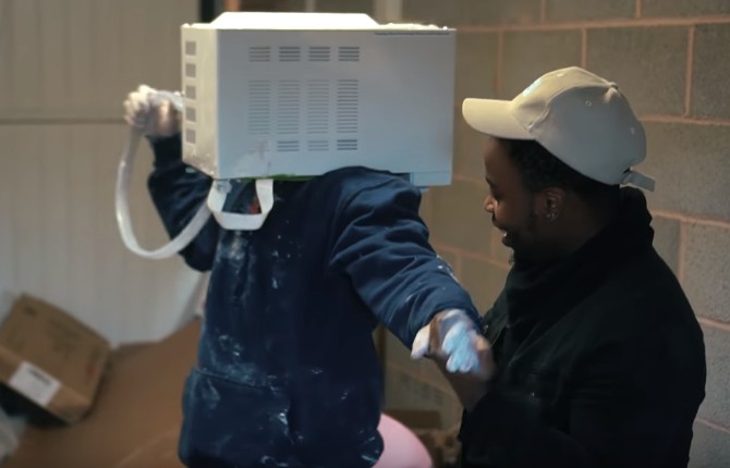 イギリスのYouTuberが電子レンジに石膏を流してそこに頭を入れた結果、抜けなくなり救助隊を呼ぶはめになった。