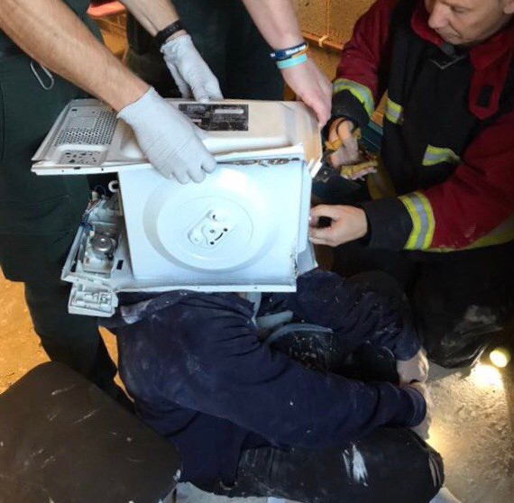 5分後に現場に駆け付けた救助隊も、電子レンジの分解を1から慎重に行い、救助に1時間以上かかったという。