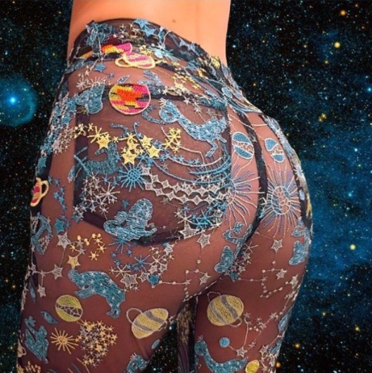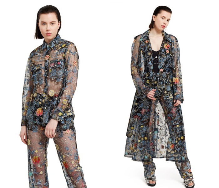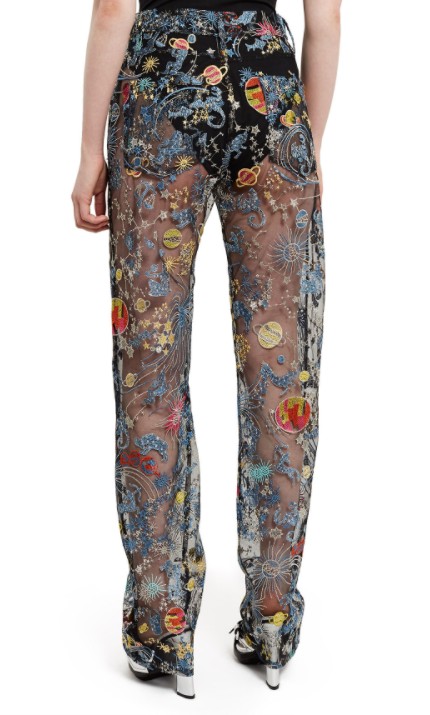 前作のフラワーの刺繍に変わって、新作では惑星や星座など宇宙を思わせる刺繍が施されている。さらに、このデニムと同じスケスケ素材で作られたシャツとトレンチコートも販売中。