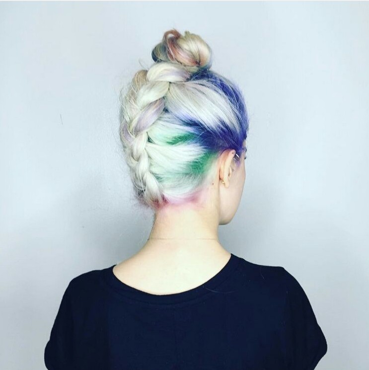「シャドールーツ(Shadow Roots)」と呼ばれる名前の所以は、髪をかき上げたときにチラリと覗く部分がまるでカラフルで美しい影のように見えるから。単色でも、何色か組み合わせてもおしゃれ!