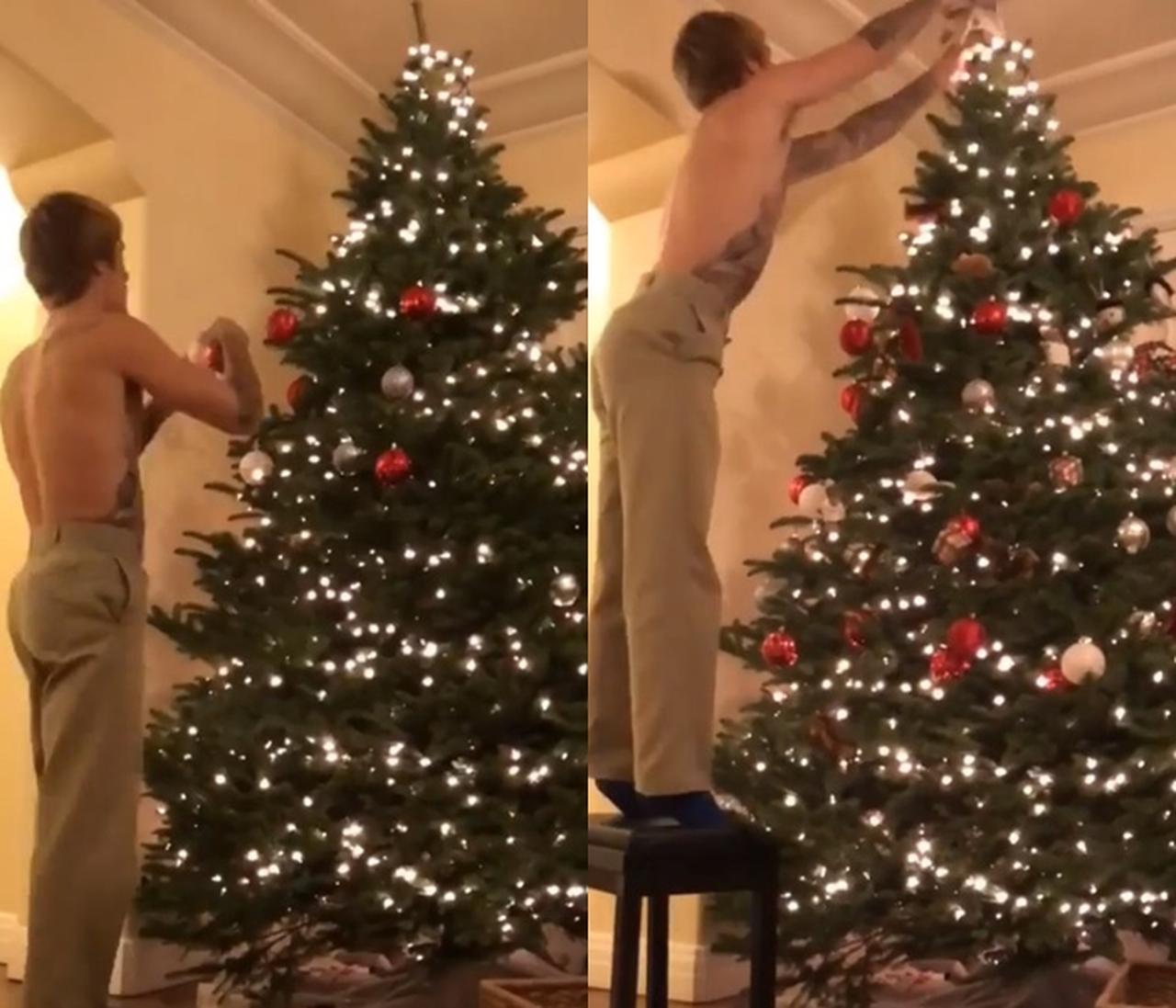 ジャスティンは自身のインスタグラムでクリスマスツリーに飾りつけをする様子を収めた動画を公開。
