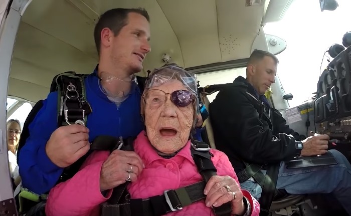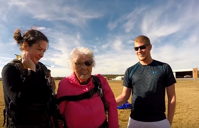94歳の誕生日を迎えたおばあちゃんが、死ぬ前にしたいと思っていたスカイダイビングに挑戦。