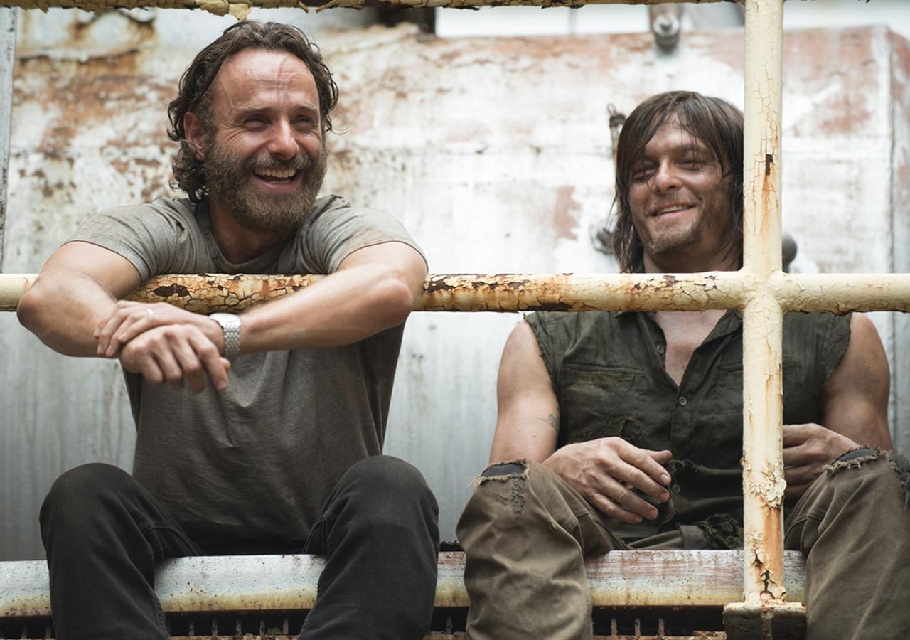 リックを演じるアンドリュー・リンカーンとダリルを演じるノーマン・リーダスは、シーズン1からずっと共演しているだけあって、仲良さそう。
