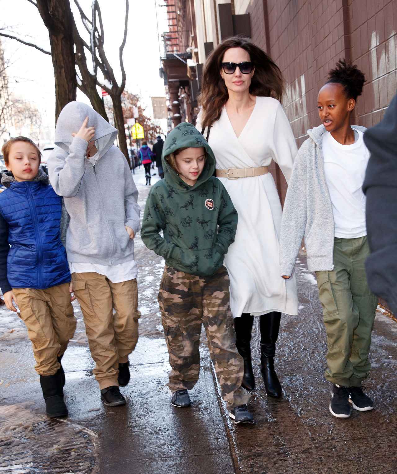 女優のアンジェリーナ・ジョリー(42)が、ザハラちゃん(12)、シャイロちゃん(11)、双子のノックス君&ヴィヴィアンちゃん(9)を連れて映画館へ。