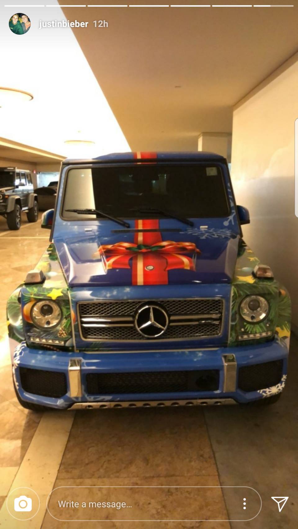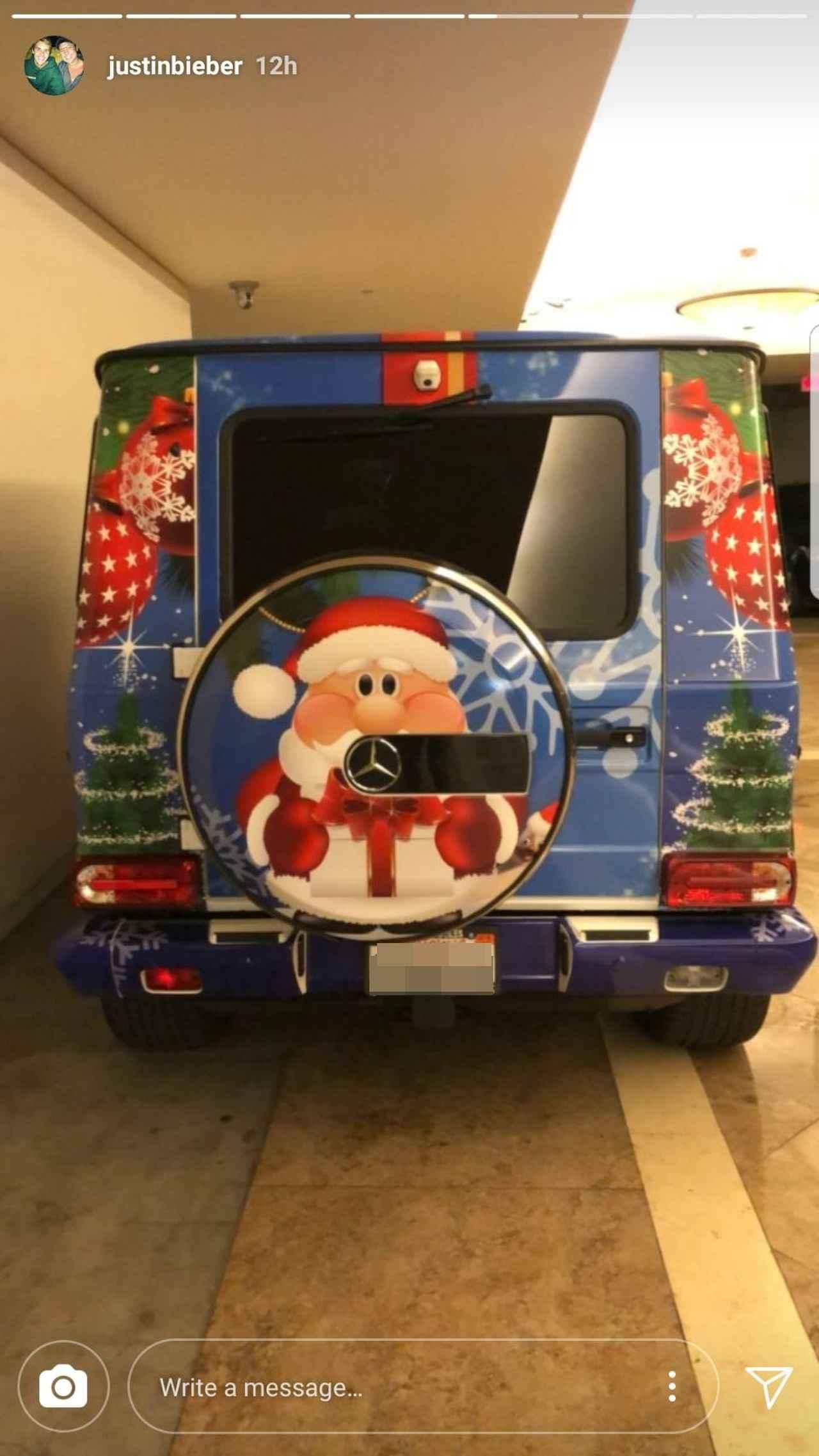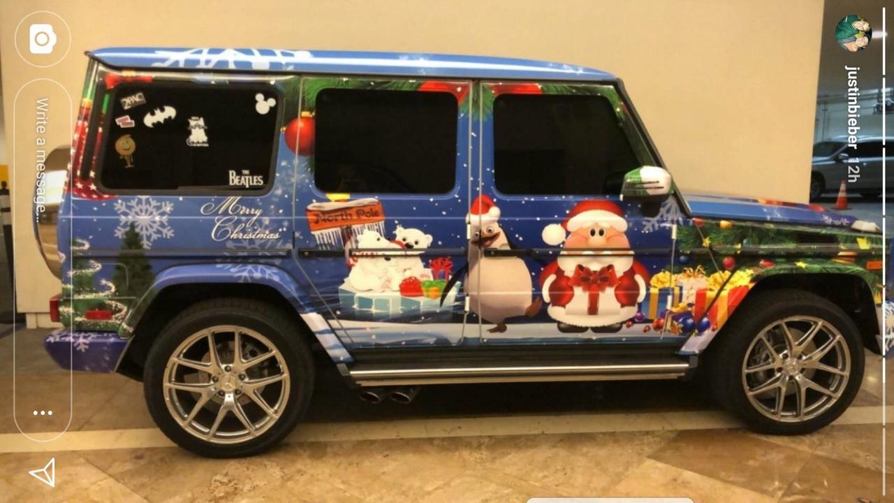 人気シンガーのジャスティン・ビーバーが、愛車をクリスマス仕様に可愛くデコレーションした。