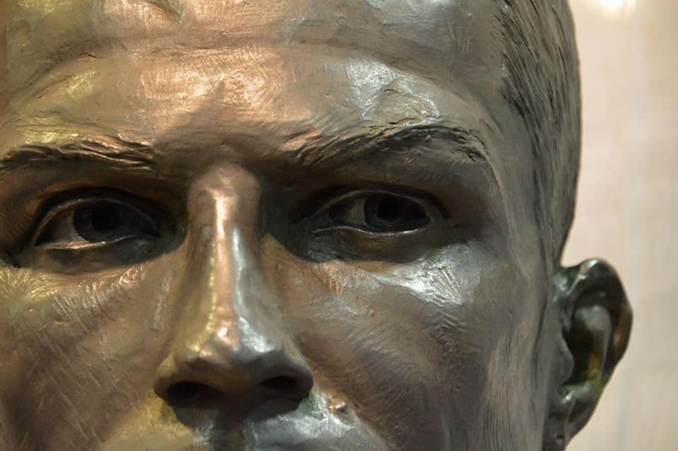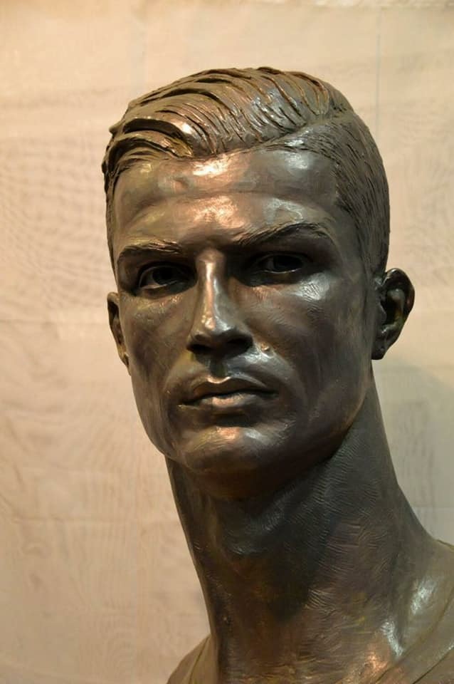 前回のものとは比べ物にならないほど完璧で、目元のホリの深さやホクロまで忠実に再現されており、クリスティアーノのキリっとした顔の銅像になっている。