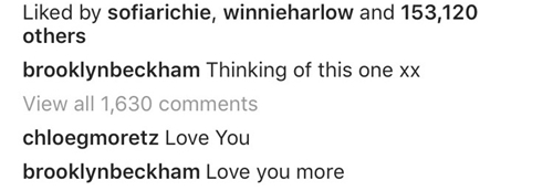 ブルックリンの投稿に、クロエが「愛してるよ」と投稿。これに対し、ブルックリンも「僕も愛してるよ」とコメントし、2人の復縁を望んでいたファンは大興奮。