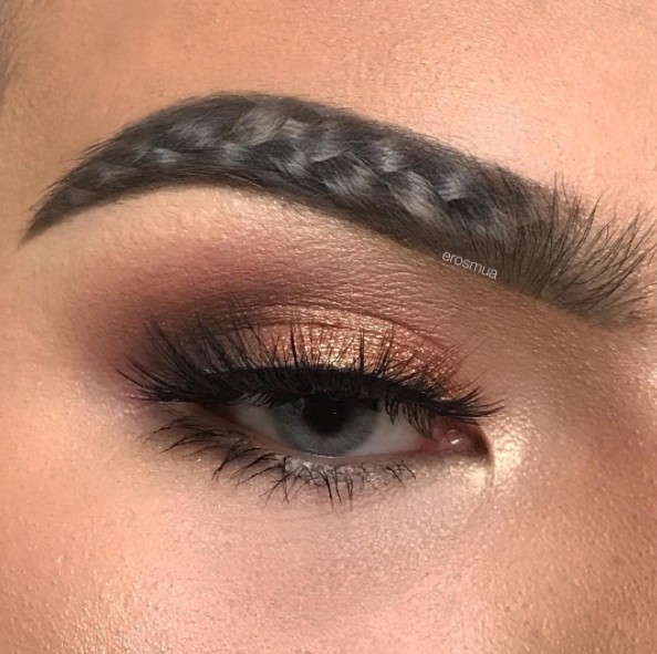 「クネクネ眉」のインパクトを超える、「三つ編み眉毛」がトレンドに。これを考案した人は、当初、ジョークのつもりで眉毛を三つ編みに加工した画像をインスタグラムに投稿。しかし瞬く間に話題となり、実際に眉毛に三つ編みを描く人まで現れる事態に。