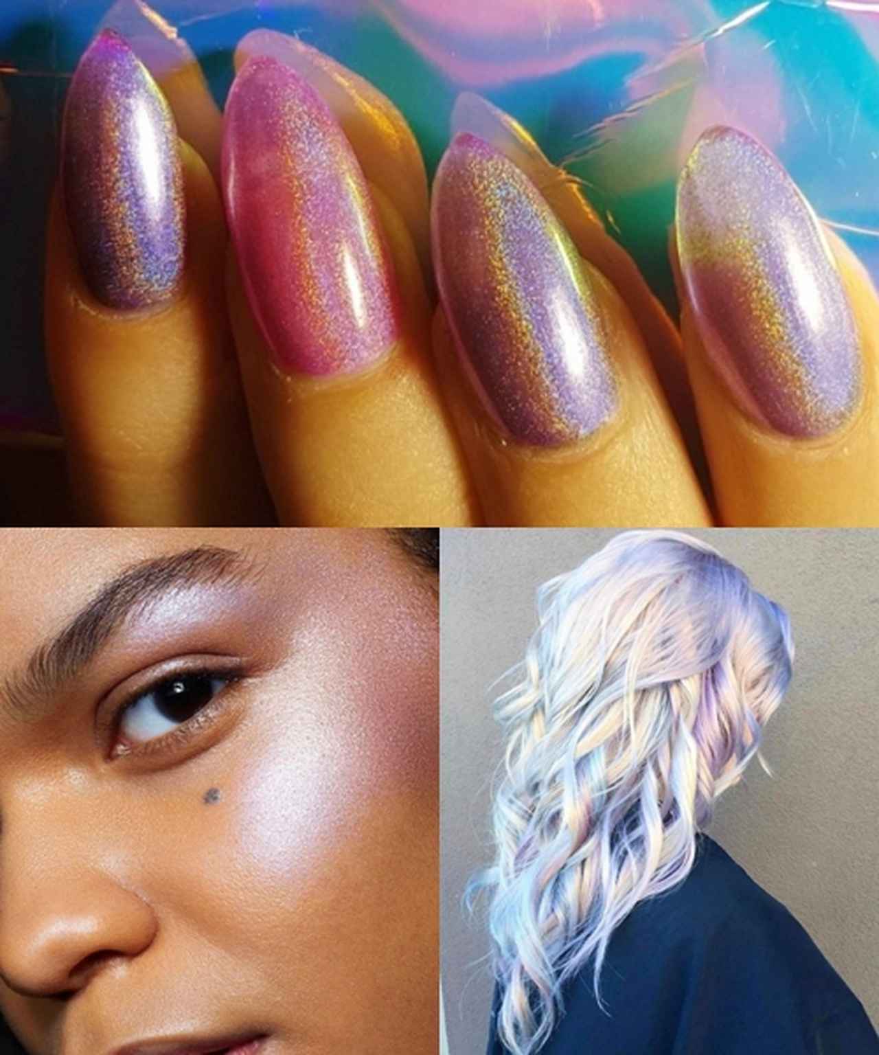 2017年は、キラキラが印象的な「ホログラムメイク」も流行。白を基調とした「ホログラム」は、ハイライトやアイメイクに取り入れるだけで、つやめきが格段とアップ。メイクだけでなく、ヘアやネイルにも取り入れることができる。