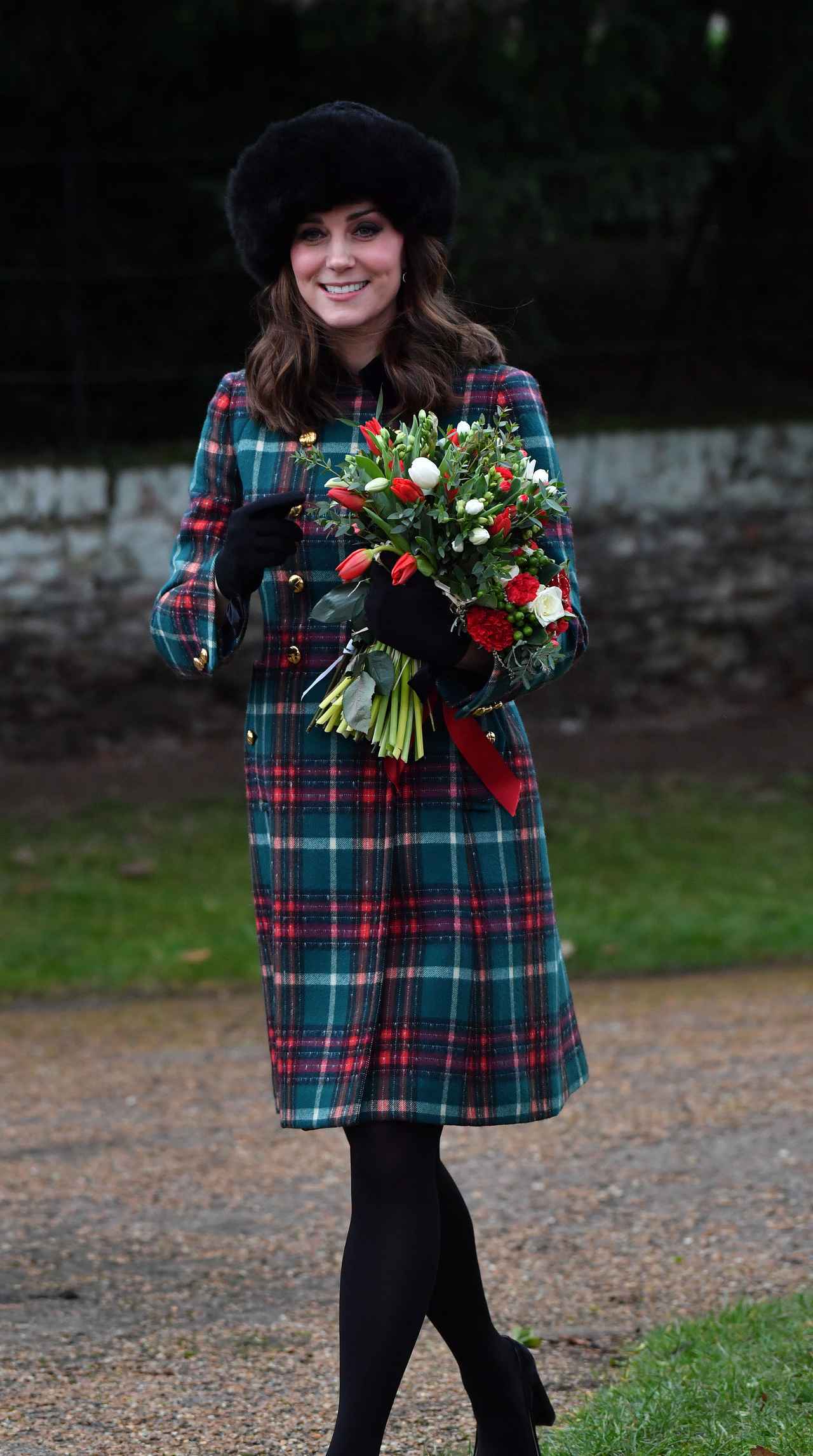 キャサリン妃は、クリスマスを意識してレッドとグリーンのmiu miuのチェックコートを。