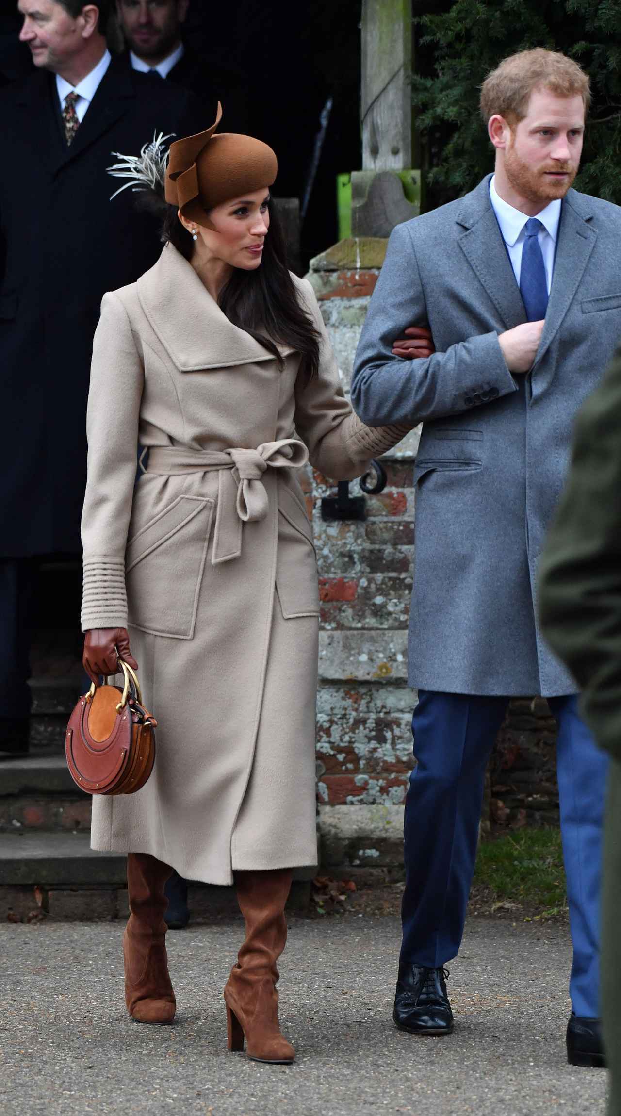 この日メーガンが選んだ服は、キャサリン妃も愛用するブランドSentalerのロングコート。そこにSTUART WEITZMANのブーツとChloéのハンドバッグ、ハットとグローブはブラウンで統一。