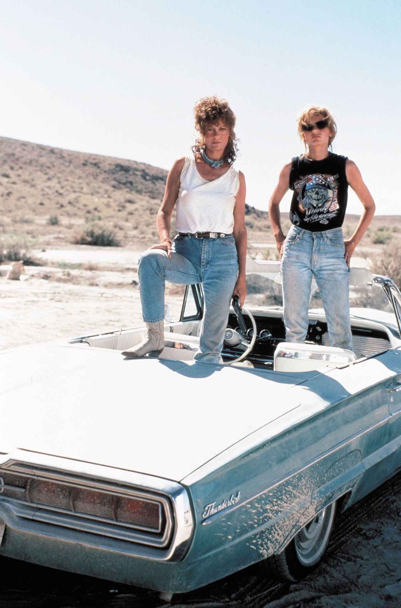 90年代らしいテルマとルイーズのオシャレなファッションや、当時まだ無名だった若き頃のブラッド・ピットの姿にも注目。衝撃的なラストシーンは賛否両論を呼んだ。
