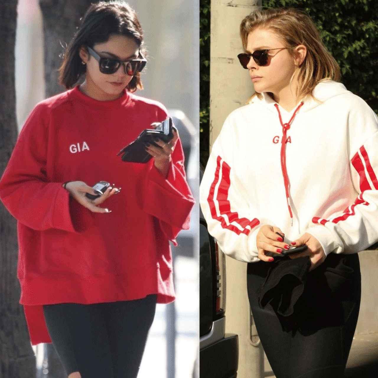 人気女優のヴァネッサ・ハジェンズ(左)と世界的人気女優のクロエ・モレッツ(右)は、I.AM.GIAのロゴが入ったフーディーをプライベートで愛用中。